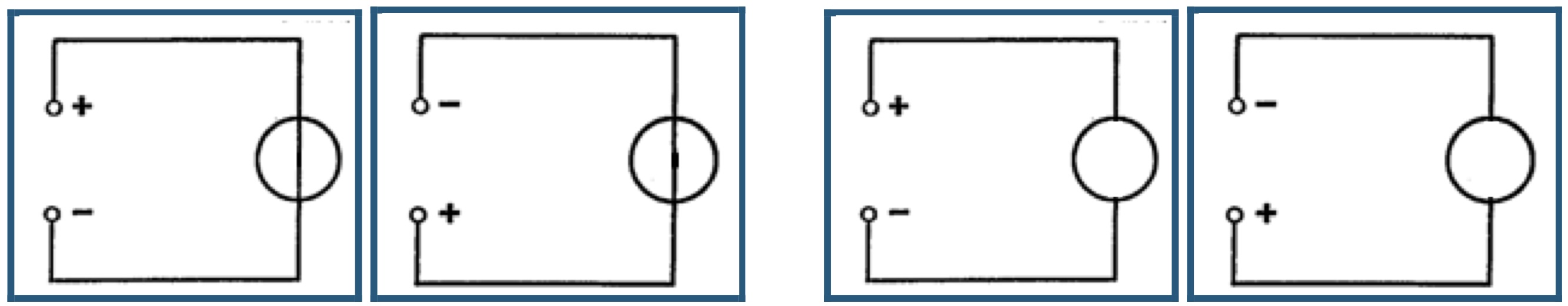- Zeichne die Position der Kompassnadel, wenn der Kompass unter dem Leiter liegt (Abb. 1 links, nächste Seite) und wenn der Kompass über dem Leiter liegt (Abb. 1 rechts, nächste Seite). Vertausche bei zwischen den Messungen die Anschlüsse an der Spannungsquelle